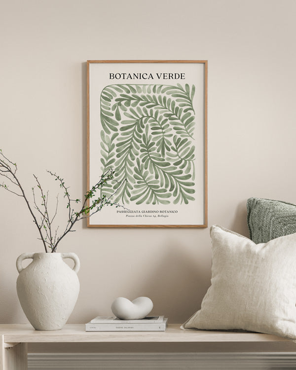 Apportez une touche de nature et de sérénité à votre intérieur avec l'affiche Botanica Verde. Son illustration artistique de feuillage aux teintes vertes douces sur fond beige en fait un élément décoratif idéal pour un salon, une chambre ou un bureau.